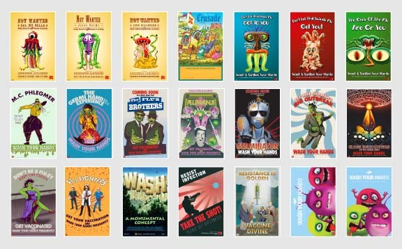 Set of 21 top quality posters to encourage Hand Washing, Hand Hygiene and Vaccinations.